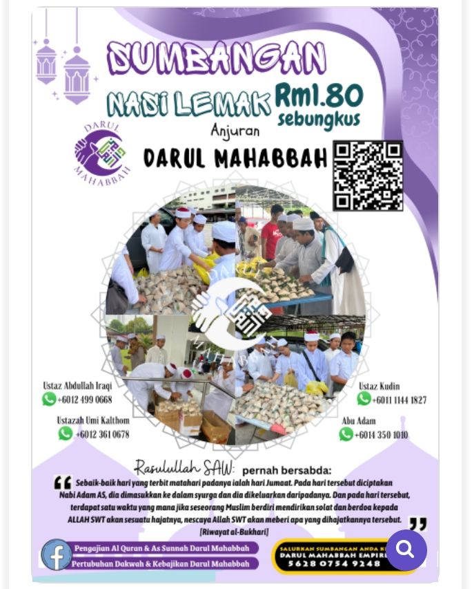 PROGRAM INFAQ JUMAAT NASI LEMAK RM1.80 sebungkus